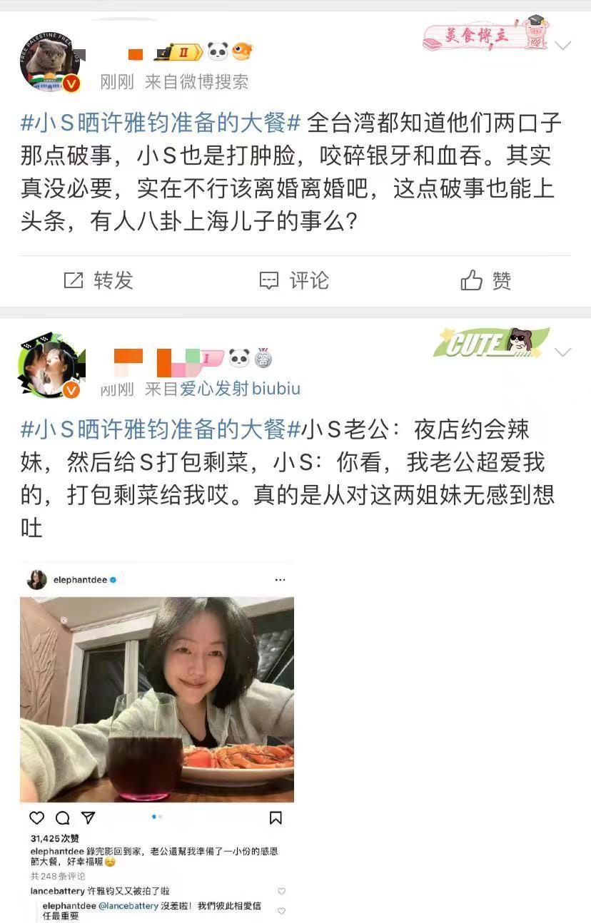 还有东谈主说,许雅钧给小S打包的是和辣妹的剩菜。